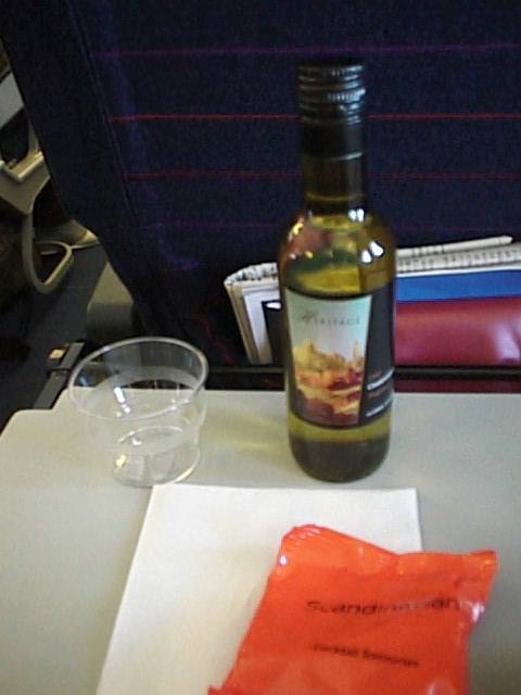 SAS機内で白ワインを頼んだら、ビン入りだった。