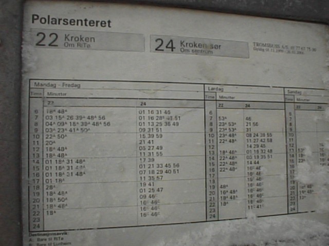 ホテル最寄のバス停の時刻表