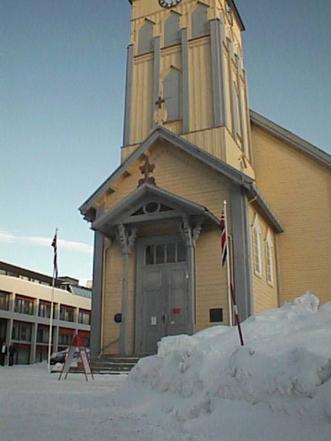 北極教会のステンドグラスの下