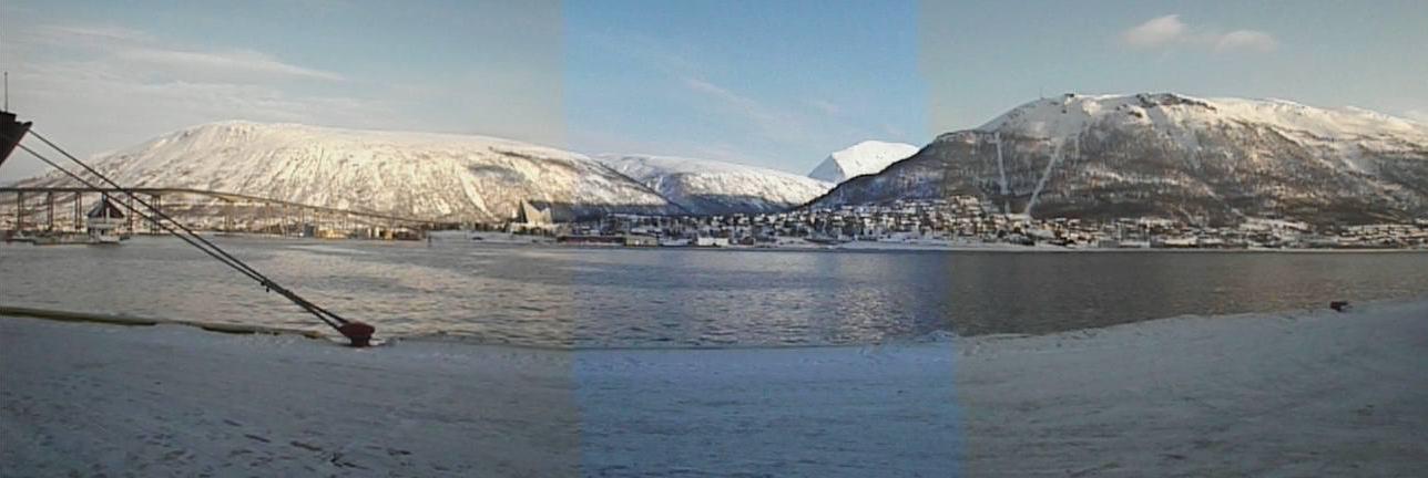 トロムソ橋からストールスタイネン山(標高420m)にかけてのパノラマ