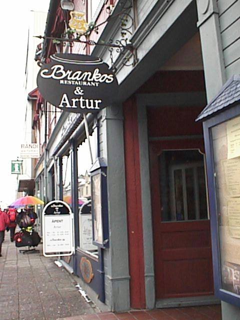 後方にある緑色の「i」マークは、トロムソのインフォメーションセンター。
