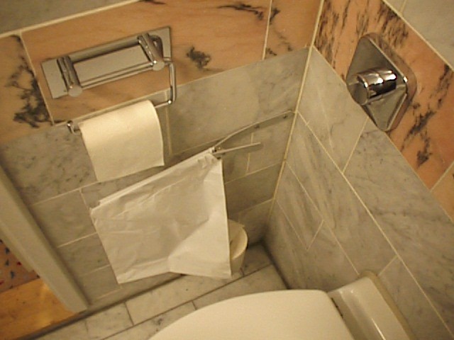 トイレにあった袋。大きいものを始末した後、使った紙を入れます。