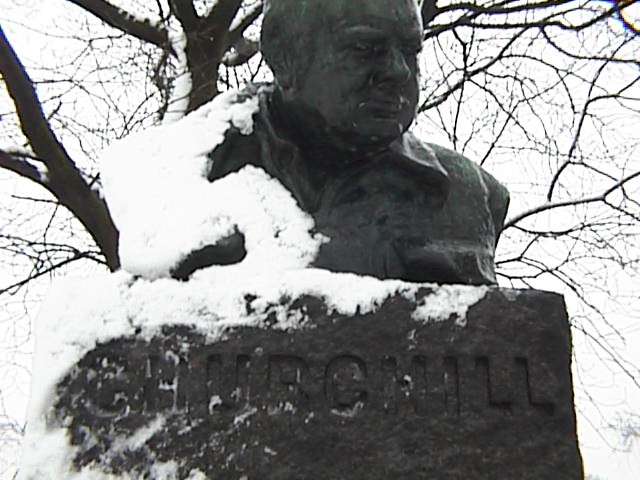 チャーチルの像に接近して撮影
