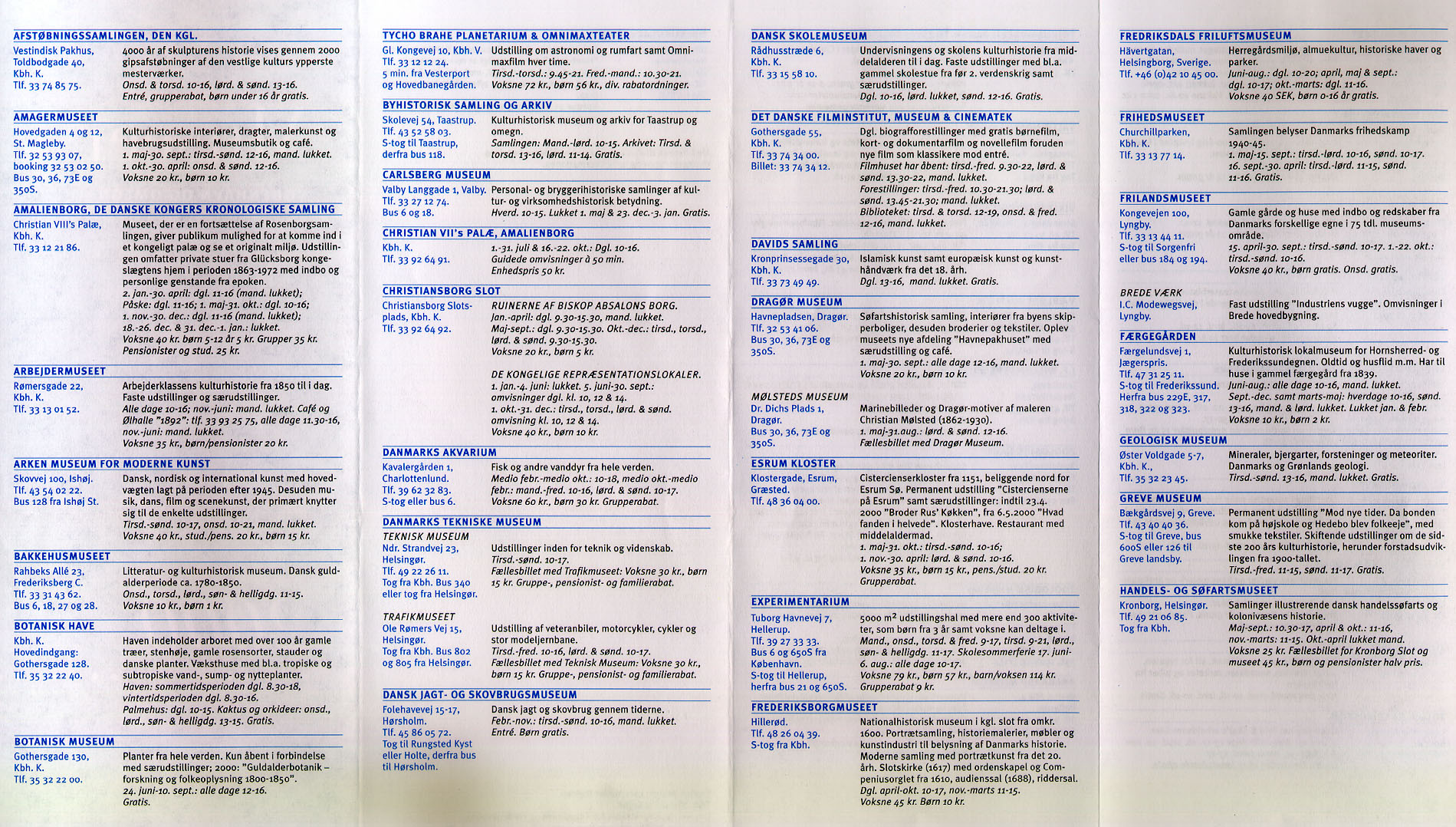 コペンハーゲン市内の博物館一覧(デンマーク語版)その1