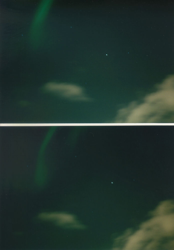 以下、2000/03/08 23:00頃に撮影したオーロラの画像。3/14に現像して、フラッドヘッドスキャナで読みこみました。