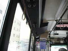 このタイプでは、降りたいときには左側のひもをひきます。 そうすると運転手さんが気づいてくれます。